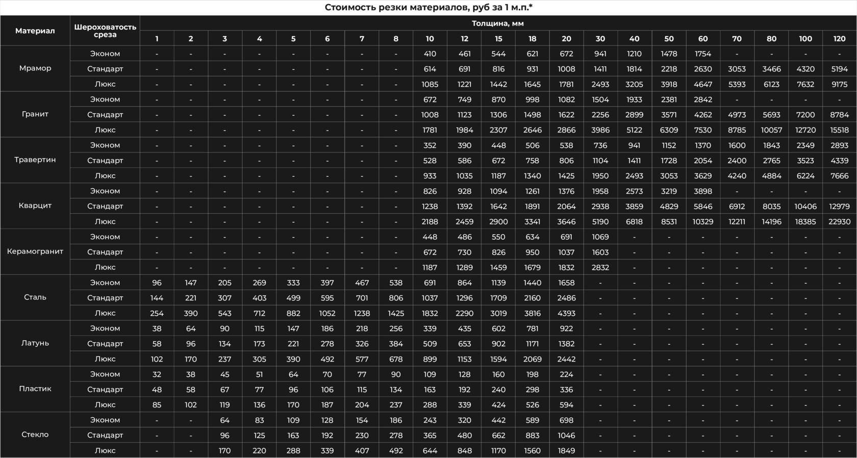 * Стоимость изготовления изделий может включать дополнительные операции и рассчитывается на основании предоставленных чертежей или технического задания. * Минимальная стоимость заказа - 3000 руб.